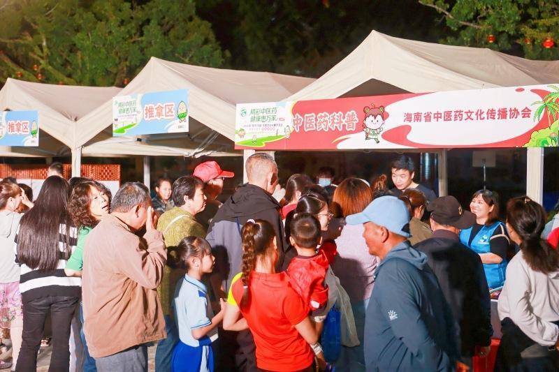 人民网五指山10月26日电(枉源) 日前,五指山市三月三广场灯火通明、药香萦绕——“精彩中医药健康惠万家”2025年“百市千县”中医药文化惠民活动在五指山顺利举行。活动以“海南十大南药”为主题线索,设置五大特色展区,涵盖中医义诊、适宜技术体验、药膳茶饮体验、中医药文化科普、互动游戏等多元内容,精心打造了一场丰富多彩、趣味盎然的中医药文化之旅,活动现场药香幽幽,让人们在沉浸式体验中领略中医药文化的独特魅力。